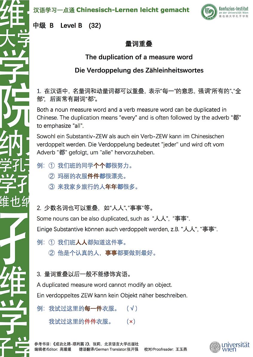 Verbale Zähleinheitswörter (ZEW): 次 (ci) und 下 (xia)